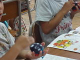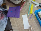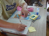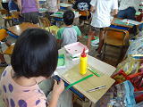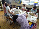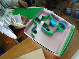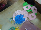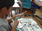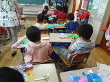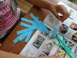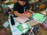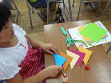 紙をおりまげたり・・・、きったり・・・、たなばた飾りをつくってました。