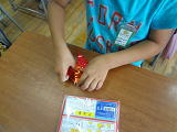 はこを作って、球体がコロコロころがるような仕組みを作っていました。夢中になって取り組んでいました。