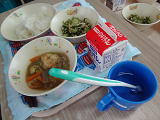 お気に入りのマットをしいて、歯ブラシコップを並べて・・・、みんなでいただきまーす!会話も弾んでいました。