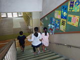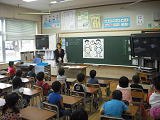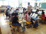 月曜日です。6年生は、はりきって1年生の教室へ・・・。読み聞かせの時間の始まりです。