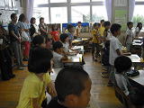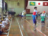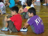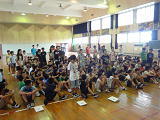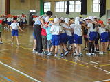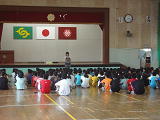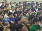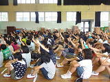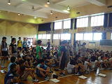 作戦を立てて、クラス対抗のゲームを行っていました。熱気が講堂いっぱい、あふれていました。