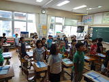 3時間目に参観授業でした。プールでの水泳、理科、音楽・・・多様な授業が展開され、保護者のみなさんは熱心に参観されていました。