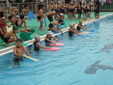 先生方の指導を受けて、それぞれのコーナーで泳ぐためのさまざまな技術の習得を目指していました。