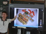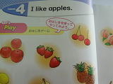 今日のレッスンは、「私の好きなもの」・・・。いろんな果物などの発音を習って、繰り返していました。先生のOKにみんなニッコリでした。そして先生の好きなお寿司のネタの話・・・・。