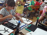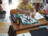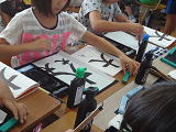 準備や片づけも上手になってきています。手は真っ黒になっても平気です。何度も書いて懸命に練習をしていました。