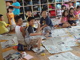 教室は巨大新聞で埋め尽くされていました。・・・子供たちは、もう、楽しくて楽しくて、大興奮。