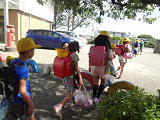 地区別にわかれて、風水害の時に注意することや危険個所を確認しました。その後、集団下校を行いました。