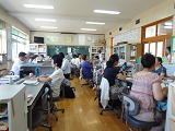 本日も台風接近の中、本校の図書館にお出でいただき、本の整理や分類等・・・、たくさんの仕事を行っていただきました。