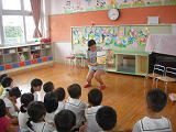 英語でじゃんけんしたり・・・、ゲームをしたり・・、あいさつをしたり等の活動を行いました。子供たちは、嬉しくてたまらない様子でした。