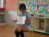 毎週木曜日・・・。6年生は交代で読み聞かせに行きます。園児たちとも仲良くなって、読み聞かせも上達してきています。この日のために一生懸命努力した結果だと思います。