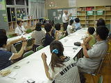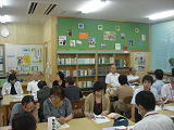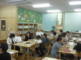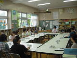 テーブルを囲み、民生児童委員の方々から見た地域での子供の様子、そして先生方からみた学校での子供たちの様子を伝え合ったり、意見を出し合ったりしました。