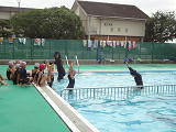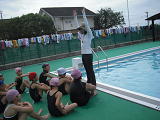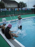 プールでは歓声と笑顔が一杯!最後のシャワーも冷たいながら気持ちよさそうでした。