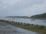 船が避難しており、ボートも倉庫に入っていました。水たまりが、地盤が緩んでいることを表しています。すべりやすくもなっているようです。