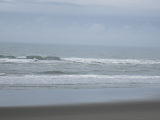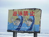 海は荒れています。晴れた日でも、ここは離岸流(だし)が強く、一瞬で流される危険のある場所です。遊泳禁止です。もちろん、水遊びも危険です。