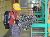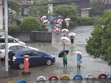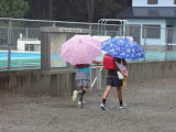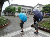 台風接近で臨時休業だったので4日ぶりの登校です。雨でしたが、みんな元気に登校していました。