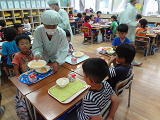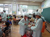 4日ぶりの給食・・・。6年生はてきぱきと・・・配膳していました。