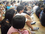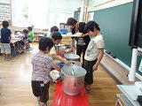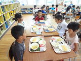食べるときは、1年生は、今はグループごと・・・。片づけもいつものように、しっかりできました。6年生のサポート、ありがとうございます。このサポートもだんだん・・・減り・・・、自分たちでできるようになっています。