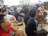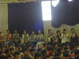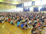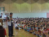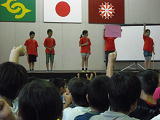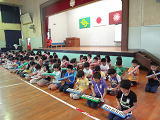 全校児童の前で、ドキドキ・・・、でもワクワク・・・。元気いっぱいの発表を行い、大きな拍手をもらいました。