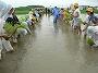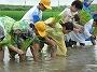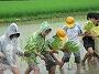 雨もまた楽し・・・。どろんこになりながら、懸命に田植えに挑戦しました。