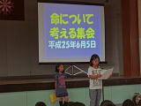 命の大切さについて校長先生のお話をきいたり、3年生と6年生の児童代表のみなさんの発表をきいたりしました。また、生徒指導の先生から、特に事故が起こりやすい場所や、そこで考えなければならない事などをスライドを見ながら、より具体的に考えたりしました。