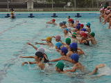 準備運動をして、水なれをして・・・、歩いたり、バタ足をしたりして、本年度初めてのプールの感触を確かめていました。