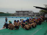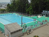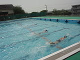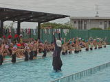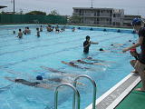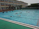 曇りの天気など、吹き飛ばして、元気いっぱい!先生の指導を仰ぎながら、今年度、初めてのプールでした。