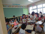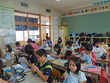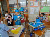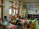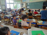 2年生の教室は笑顔にあふれています。洋服が完成した子供もいます。ファッションショ―のポーズの練習もしなければ・・・・。