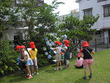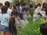 水の中の生物について、いろんな角度から学んでいます。先日は学校の池から水を汲んでいました。
