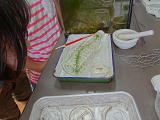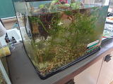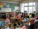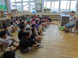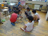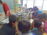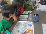 理科室では、汲んできた水の様子やメダカが誕生して成長する様子・・・、藻の役割、魚の食べ物と環境等・・・・、子ども達は水槽やシャーレをのぞいたりして、興味しんしん・・・・の様子!