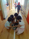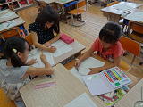 波縫い・ぼたん付けに続いて、針と糸を使った技を身につけています。自分の洋服のボタンが付けれたり・・・、ほころびが直せたり・・・、いろんなことができるようになりますね。