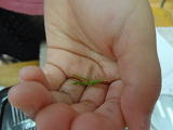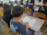 バッタをシャーレに入れて、虫めがねで観察・・・、そして観察ノートに記録していました。小さいバッタも虫めがねで見ると巨大バッタに・・・。みんな大喜びでした。