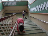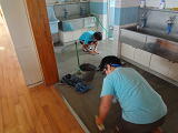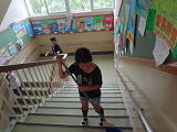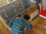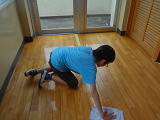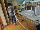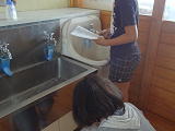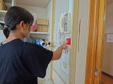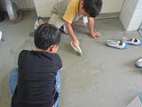 昼休みの始まりに道具を準備して、工夫しながら、取り組んでいました。新しい場所にかわって1週間・・・。教室そうじと異なる手順を覚えて、頑張っているようです。