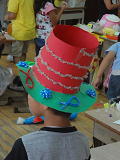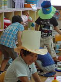 自分だけの帽子が次々にできています。「いいでしょう!」「似合う?」「素敵だね!」「みて、みて・・・」