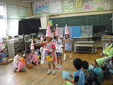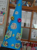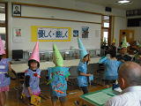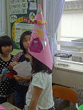 ハンドバッグ、ぼうし、服の3点セットを作ってファッションショーをしました。モデルウォークで花道に登場!!「かわい~。」「あのかざり、いいね。」など観客席から感想がとびかいました。その後、校内もモデルになった気分で歩きました。校長室におじゃまして、校長先生の前でくるっとターン。ポーズを決めました。