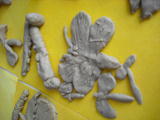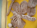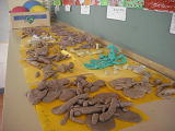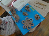 キャベツ畑からふ化していく、ちょうちょうの姿を観察して粘土で表現しています。