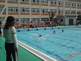 3,4校時にプール開き!楽しい時間を過ごしました。水に浮かんでみたり、バタ足をしてみたり・・・、先生の指導のもと、精一杯頑張りました。プールからは歓声が聞こえてきました。