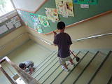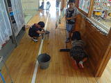 昼休みが始まったらすぐに、バケツに水を入れたり・・・、ほうきとチリとりを準備したりして、遊びに出掛けていました。そうじの時間になると、すぐに取りかかって、それぞれの担当の所をきれいにしていました。