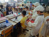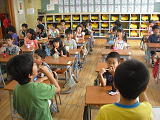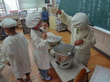 給食当番のみなさんが、てきぱき準備する中、それを待っているみなさんは、行儀よく静かでした。