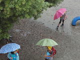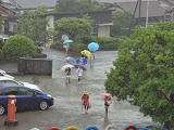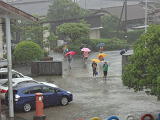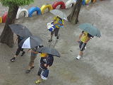 傘で見通しが悪いです。増水している箇所もありますね。安全に十分気をつけて登下校してください。