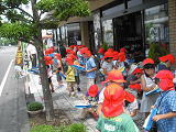 先週、金曜日の学校周辺の探検の様子。商店街や神社、公園など、たくさんの発見があったようです。