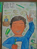 1年生は、早くから歯磨きの方法を学んでいます。全校児童は、給食後に「歯磨き体操」の音楽に合わせて、毎日磨いています。また、6年生は保健の時間に歯の大切さについて学んだり、ポスターを書いて、歯の大切さなどを呼び掛けたりしています。