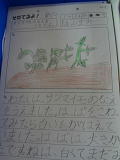 6年生の掲示板や教室の壁には、完成した作品が次々に掲示されています。今日は、4年生が6年生の作品をみて、感想を書いていました。・・・6年生の作品に表われたさまざまな表現に学んでいました。自分たちの作品作りのお手本にもしているようです。