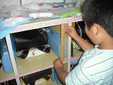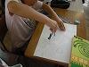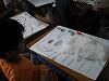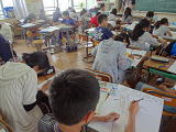 昨日、奉仕作業で保護者の皆様に調整いただいた机・椅子で真剣に取り組んでいました。