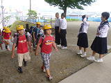 中学生のそばでいっしょに・・・と並んで立つ様子がみられるようになりました。元気なあいさつが、ここかしこ・・・、児童の声は日ましに大きくなっていくようです。