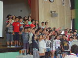 5年生は、心を一つにして全校児童の前で堂々の発表!大成功でした。チームワークの大切さや力を出し尽して自分を表現することの気持ちよさや充実感を味わったようです。
