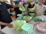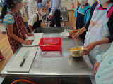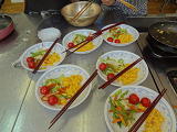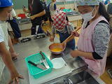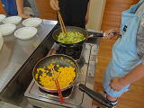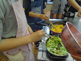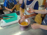 卵と野菜を使った調理実習・・・。楽しくて仕方ない様子!チームの中で役割をきめて・・・、おいしい料理の完成!次は、お弁当の一品になることでしょう。