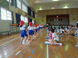 中学生も小学生にいろんな言葉をかけていました。日々、交流が深まりました。小学生は中学生に学ぼうと自分たちも懸命に運動に参加・・・。あいさつはぐんと向上しました。