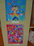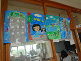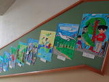 イラストクラブのみなさんの作品が中央階段に掲示してあります。素敵な作品ばかり・・・、みなさん、みてくださいね!
