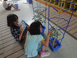 「いちごの葉っぱ、どれくらいあるだろう?」「先生!トマトの赤ちゃんが、いっぱいだよ!」