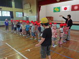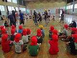 6年生が1年生をさそって、いっしょに遊びました。6年生がお迎えにいき、並び方や遊び方をやってみせて・・・、楽しい交流が始まりました。6年生のみなさん、ありがとうございました。